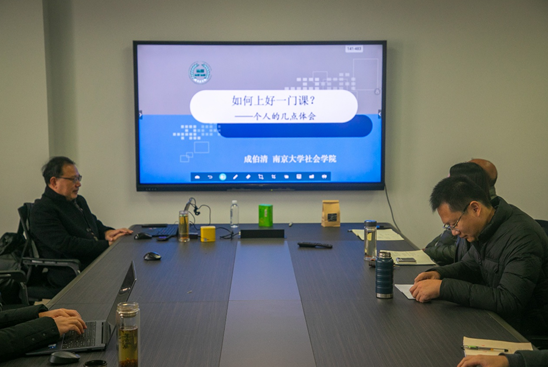 2025年11月27日,公共管理学院在厚学楼909会议室举办了教师教学专项培训暨基层教学组织教研活动之一流课程建设讲座。中国社会学会副会长、江苏省社会学会会长,教育部高等学校社会学类专业教学指导委员会副主任委员、南京大学社会学院成伯清教授受邀为我院教师作“如何上好一门课?”的专题讲座。本次讲座活动由公共管理学院副院长陈莉教授主持,公共管理学院各系所教师骨干参加了本次讲座并进行了深入交流。